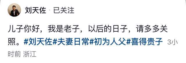3月14号,曾在《盗墓笔记》中扮演王胖子的46岁演员刘天佐官宣喜讯,也许是老来得子,也许是感慨这一路的不易,他动情地说道:儿子你好,我是老子,以后的日子,请多多关照。