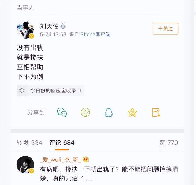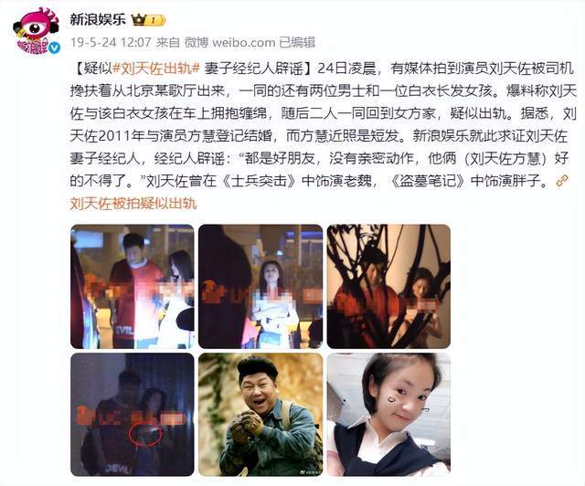 犹记得2019年的时候,有媒体拍到刘天佐与一名白衣女子从歌厅离开,举止亲密,引发出轨传闻。随后,刘天佐发文否认,方慧以及经纪人也出面否认。