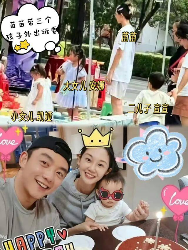 一开始有狗仔拍到苗苗带着两个孩子出门,身边还跟着一个抱婴儿的阿姨,便猜测他们已经生了三胎。