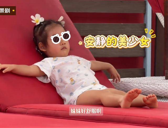 最小的三胎女儿,这也是首次清晰出镜,她没有跟着哥哥姐姐一起打闹,而是乖乖躺在躺椅上晒太阳,软萌乖巧,松弛感拉满。