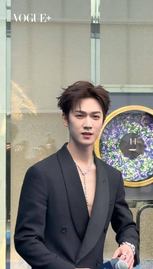 颈间佩戴着品牌珠宝,和他少年清俊的气质形成了强烈反差。