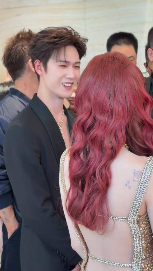 先说说最先亮相的宋雨琦,她当天的造型确实亮眼,一头惹眼的红发格外吸睛,搭配一条金色吊带裙。