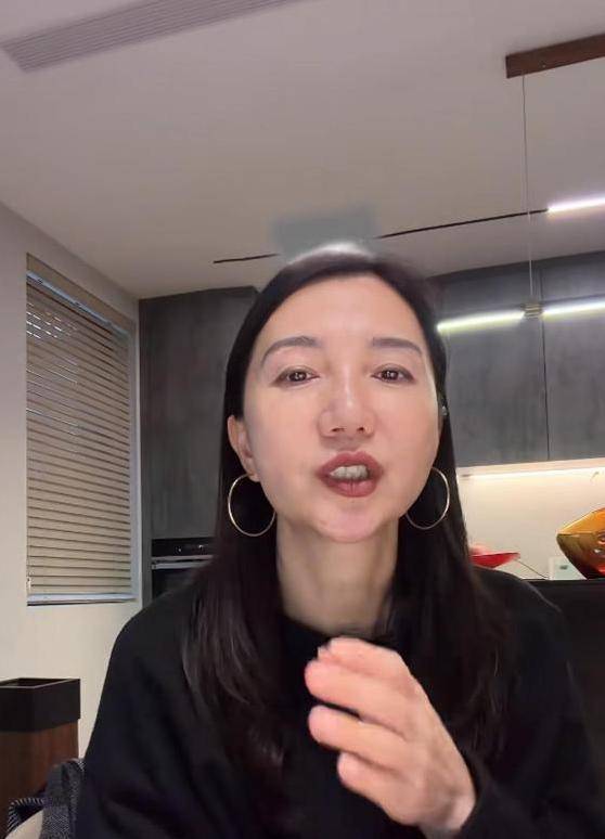 在视频中,阿朵身着一件黑色的宽松圆领上衣,她的耳朵上装饰着一对大型的金属圆环耳饰,而手腕上则佩戴了一串浅色的珠子手链。尽管46岁的她脸上的纹路清晰可见,但她总是坦然地坐在那里,既不做作也不隐藏,给人一种真实而坦率的感觉。