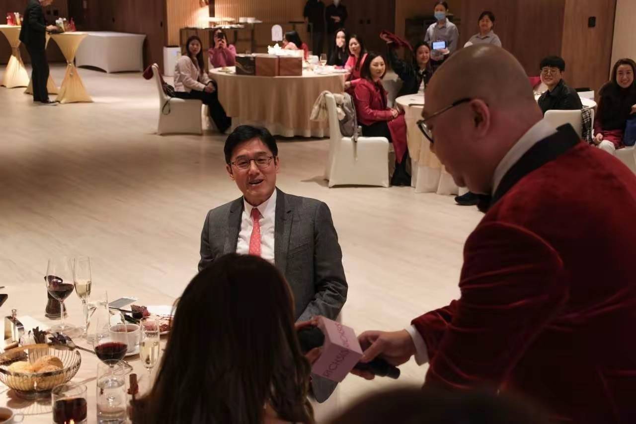 3月13日,富商马清铿就这么堂而皇之的出现在情妇公司的年会活动上。他西装革履、带着眼镜斯文绅士,系着红色领带与钟睿心的红裙完美呼应。