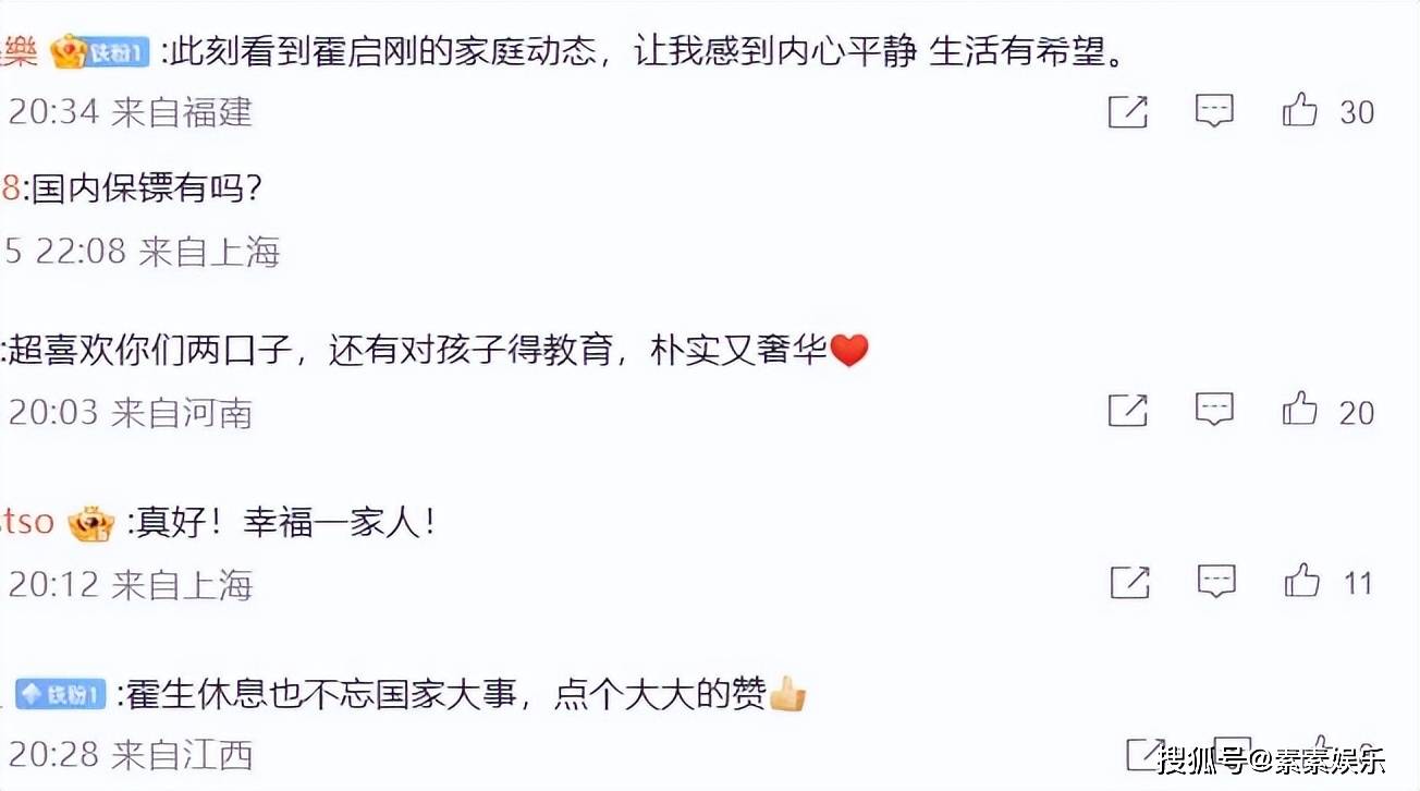 网友留言:看到霍启刚的家庭动态,让我感觉到内心的平静,生活有希望。