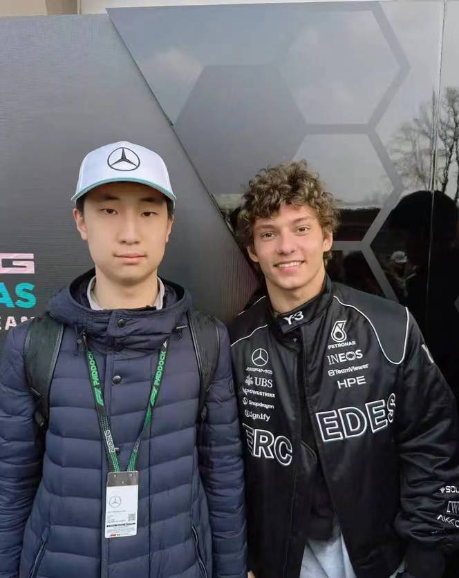 另一位让林大竣惊喜的是梅赛德斯青训车手安德烈亚·基米·安东内利(Andrea Kimi Antonelli),这位被誉为“天才少年”的17岁新星不仅为林大竣签名,还主动邀请他和父亲合影。林永健在社交平台感慨:“现场又开心又震撼,幸福感拉满!”安东内利的平易近人也让林大竣感叹“赛车手比想象中更亲切”。