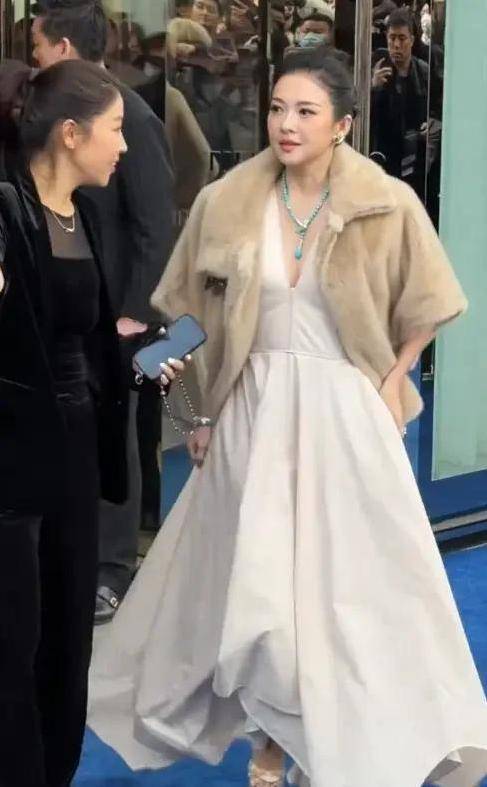 直到最后一刻,章子怡才以压轴的姿态出现。她穿着一条白色的深V设计长裙,外面还披着一件米色毛毛材质的外套,显得非常贵气。她的气势和气派,瞬间就让在场的所有人都被她的风采所超越。