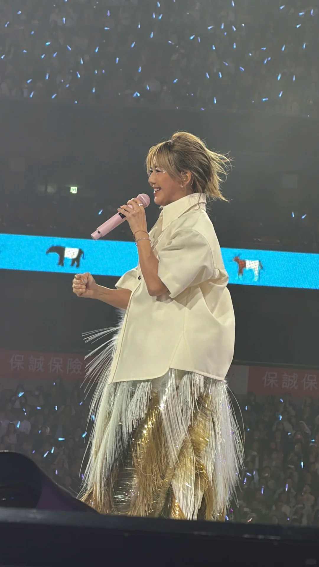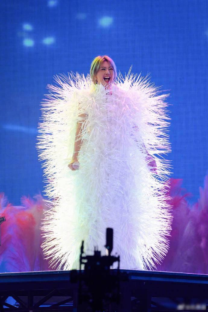 三月十五号孙燕姿巡演首站开唱,唱的仍是那些老歌,嗓子也保持稳定,但大家讨论的不是《遇见》有多动人,而是她穿的那几套衣服,白衬衫配宽松半裙,全身插满尖刺的海胆装,蓝白蓬纱裙,肩垫大得像扛着网球拍的套装,全被截图疯传,有人说像鸵鸟裹棉被,有人觉得像一次性口罩缝在一起。