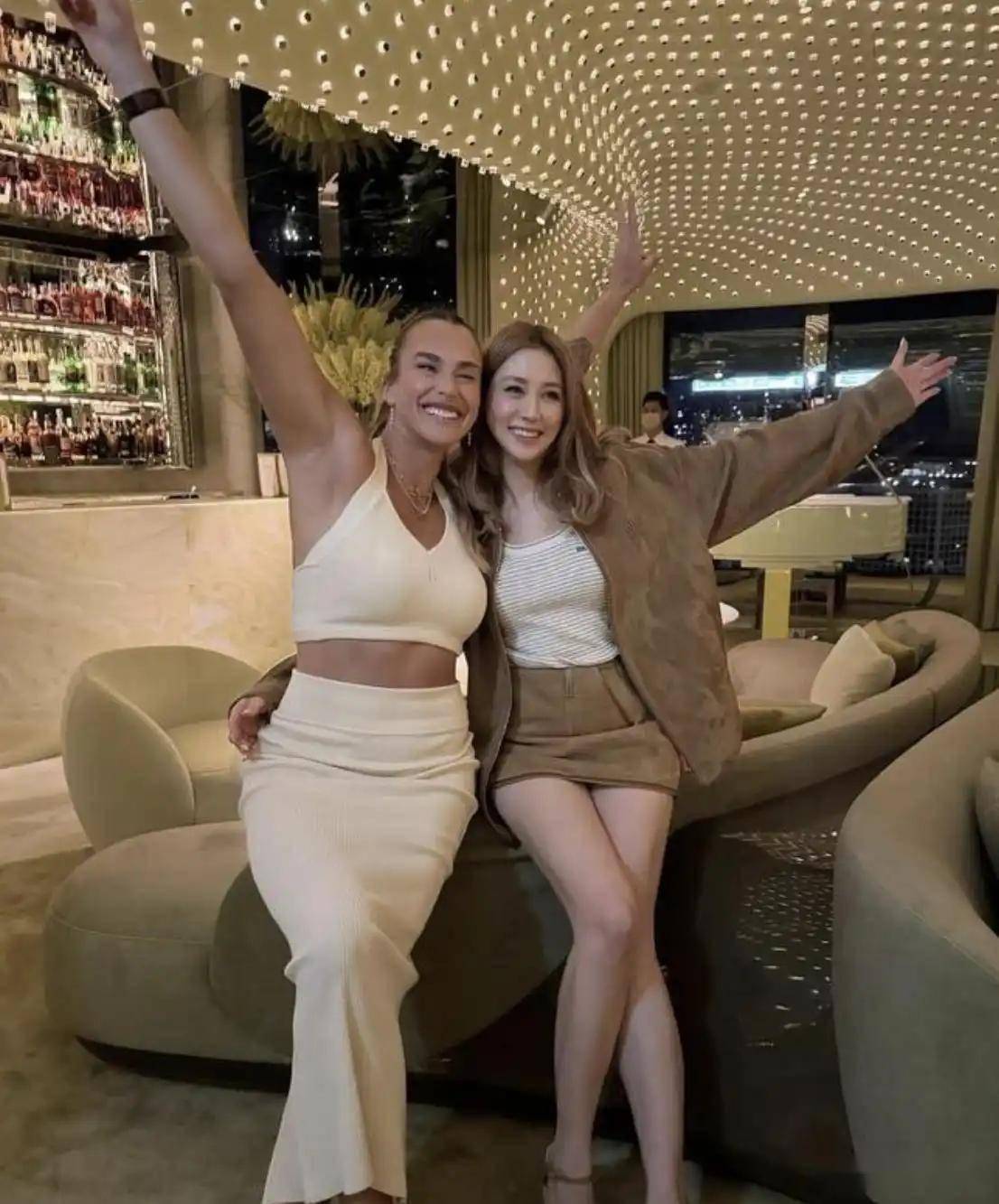 其中最引人注目的一次,是接待世界排名第一的白俄罗斯网球运动员阿丽娜·萨巴伦卡。 2025年10月,萨巴伦卡来香港参加表演赛,徐子淇夫妇便在Peridot设宴款待。 现场流出的照片显示,徐子淇身穿卡其色套装,与萨巴伦卡相谈甚欢,她还亲自为这位网球名将拍照。 整个聚会氛围轻松,没有过于隆重的排场,更像是一场朋友间的私人聚会。 萨巴伦卡随后也在自己的社交账号上分享了合影,表达了对这次招待的感谢。