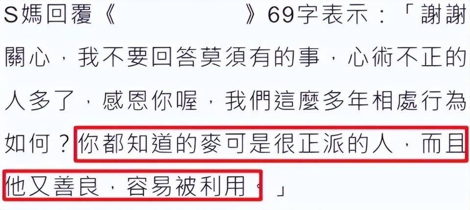 S妈也出来说了话,称女婿只是太容易被利用,顺手把矛头指向了爆料者。