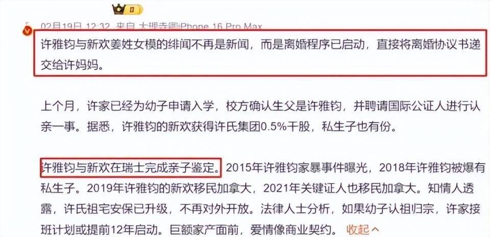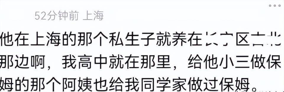 而就在舆论沸腾之际,一个上海IP的网友现身爆料,声称许雅钧的小三和私生子就在上海,还称自己的同学与许雅钧家里甚至用过同一个保姆。