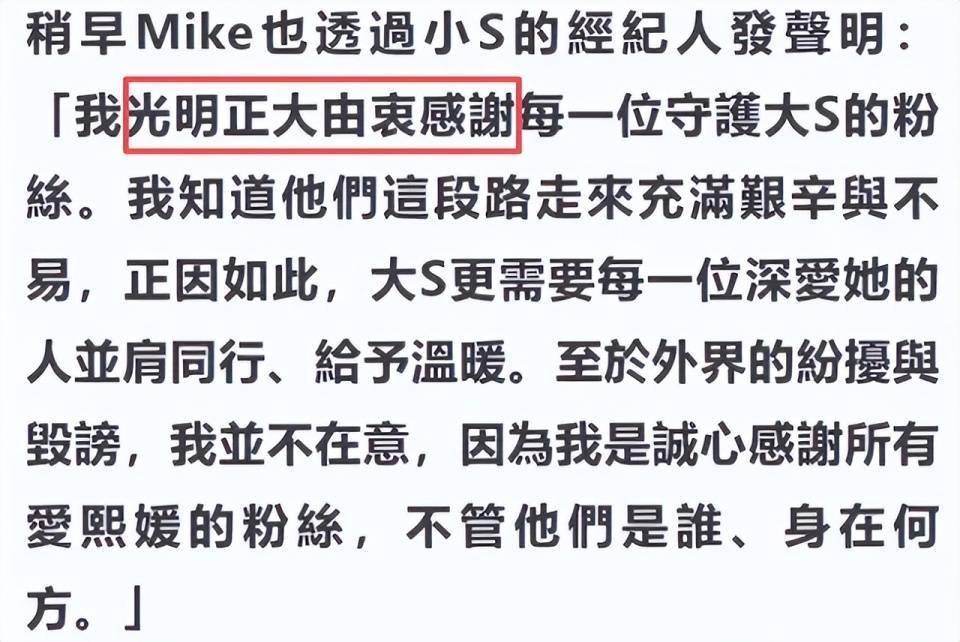 然后通过小S的经纪人发出声明,称自己联系粉丝是“光明正大的感谢”。