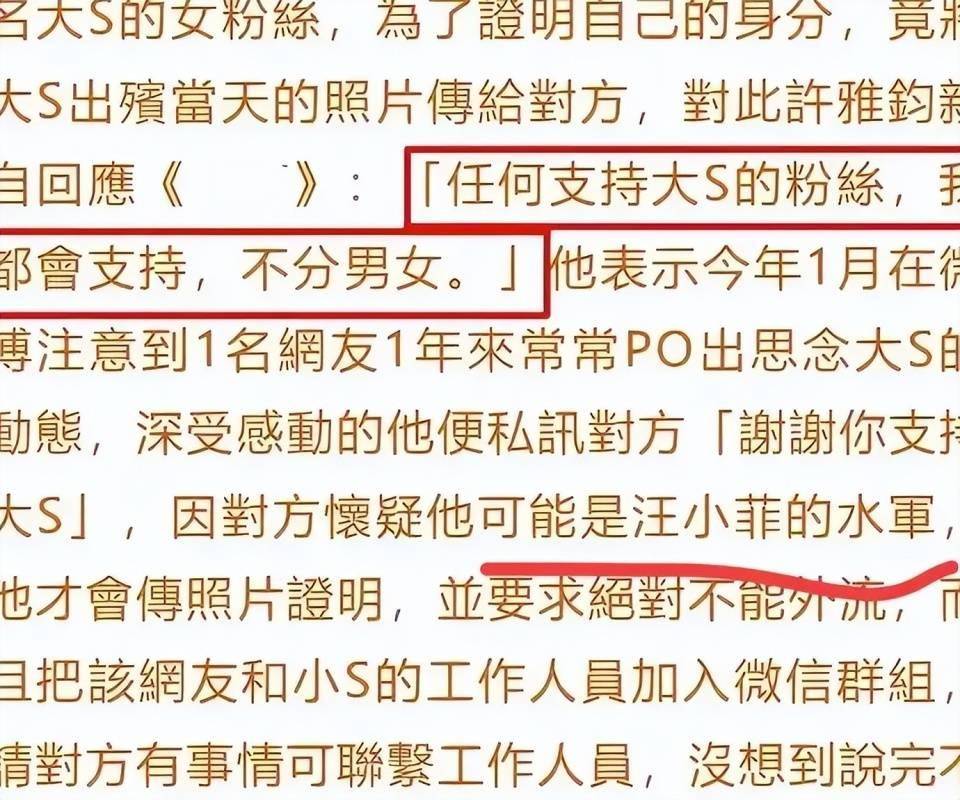 许雅钧的回应,是通过小S的经纪人发出的。