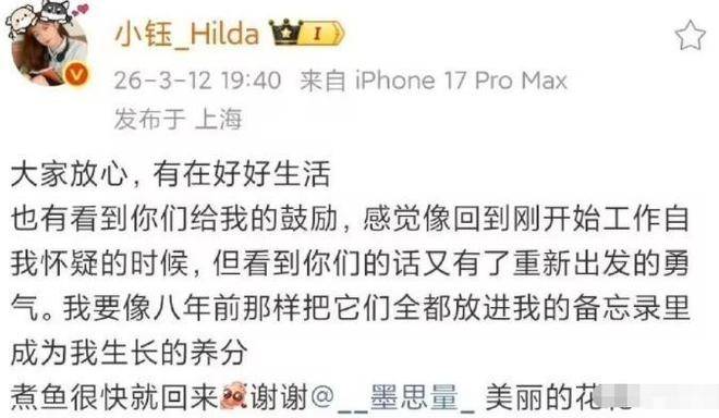 在舆论的浪潮中,小钰终于在社交平台上发布了一段文字,首次以自己的声音回应分手风波。她坦言自己有在好好生活,也看到了许多网友给予的鼓励与安慰。她回忆起这段时间的感受,让她想起初入行业时的那份迷茫与不安,当年同样经历过自我怀疑,但依靠外界的支持,她最终找回了前进的动力。如今,她希望将这些经历再次记录下来,就像八年前那样,把它们写进备忘录里,作为未来成长的养分。
