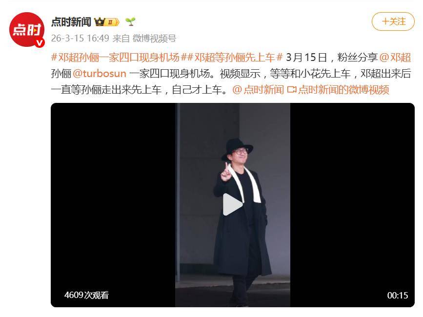 3月15日,一段邓超孙俪一家四口现身上海机场的视频,让网友直呼“又被这对老夫老妻甜到了”。视频里没有刻意秀恩爱,只有一个简单动作:邓超守在车边,耐心等到孙俪走出来