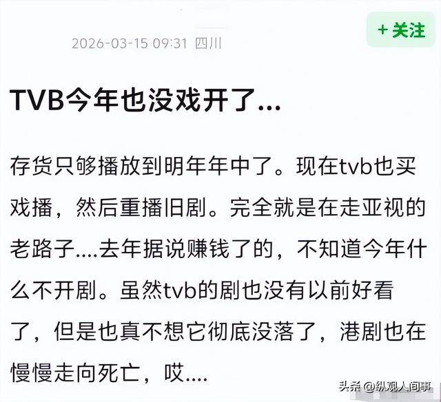 还有人翻出过往的种种细节,直言如今的 TVB,像极了当年亚视倒闭前的状态。
