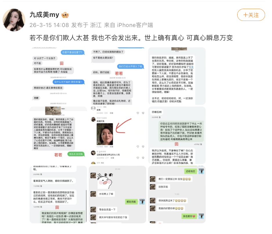但随着九成美放出相册录屏等硬核证据,部分声音也渐渐变得微弱。