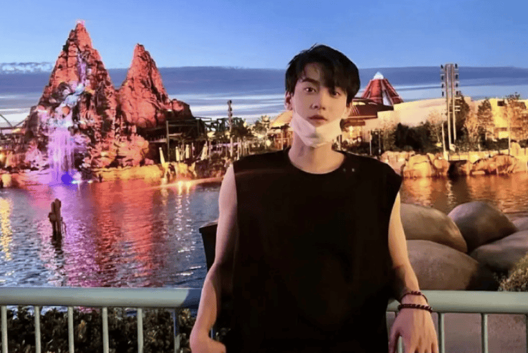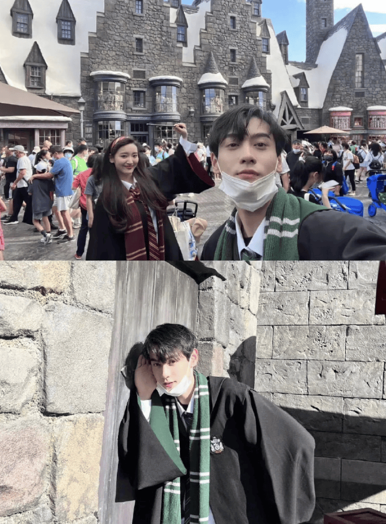 又比如这张氛围感十足的迪士尼男友风随拍↓