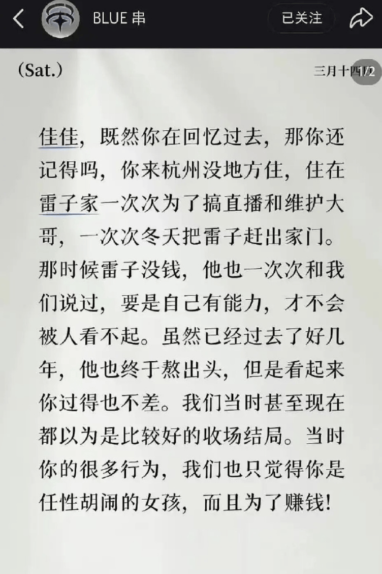然而,就在事件陷入罗生门之际,一位网名为“blue串”的田栩宁好友突然现身发文替兄弟鸣不平。