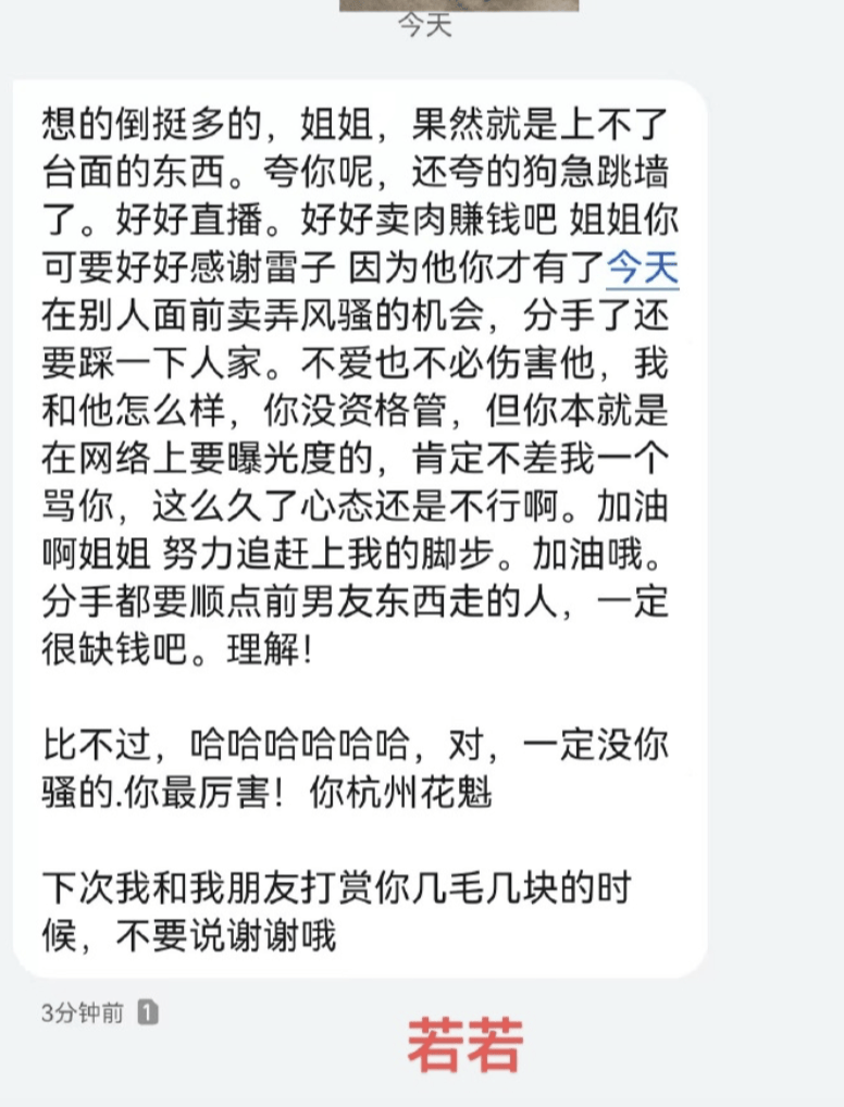她一边嘲讽九成美的职业、说她“low”,让对方“好好直播卖肉赚钱”......