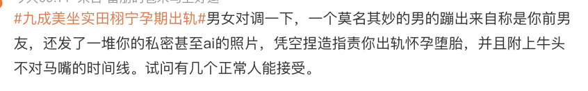 也就意味着,在2023年底到2024年初的那段时间里,田栩宁一边对九成美说着甜言蜜语,一边还在准备迎接新生命的到来......