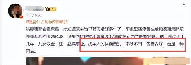还有人对比姚晨的两段婚姻,感慨人心易变,也有人觉得,感情走到尽头,体面告别就是最好的结局。