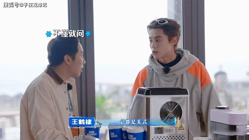 徐志胜对着贴满说明书的机器,把美式、卡布奇诺、浓缩咖啡的问题反复问了十几回,而王鹤棣从耐心教导到举椅子腿假装摔倒
