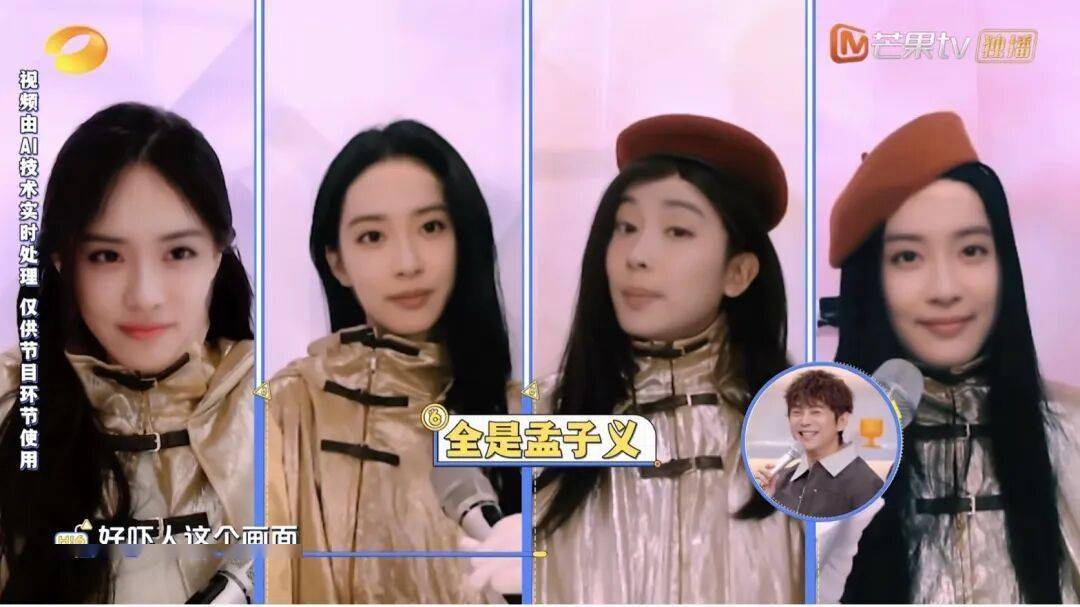 第一轮游戏,李一桐、周也、杨迪、张颜齐都用AI生成了孟子义的模样。