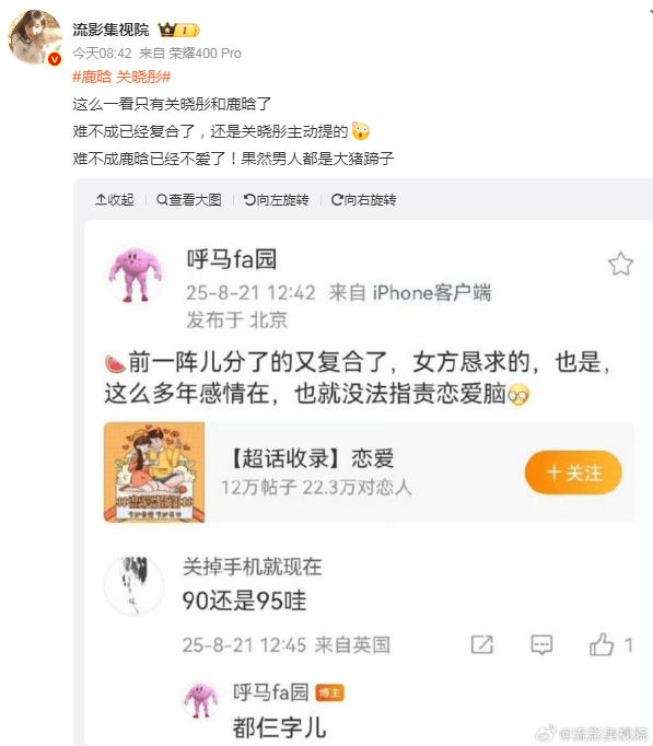 近期,网络热议的“双顶流情侣复合”传闻将焦点集中在鹿晗与关晓彤身上,引发广泛猜测。