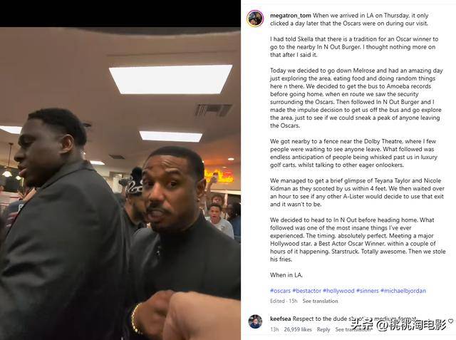 从聚光灯下的奥斯卡荣耀舞台,到充满烟火气的街头汉堡店,迈克尔用最简单真实的方式庆祝了自己的高光时刻。