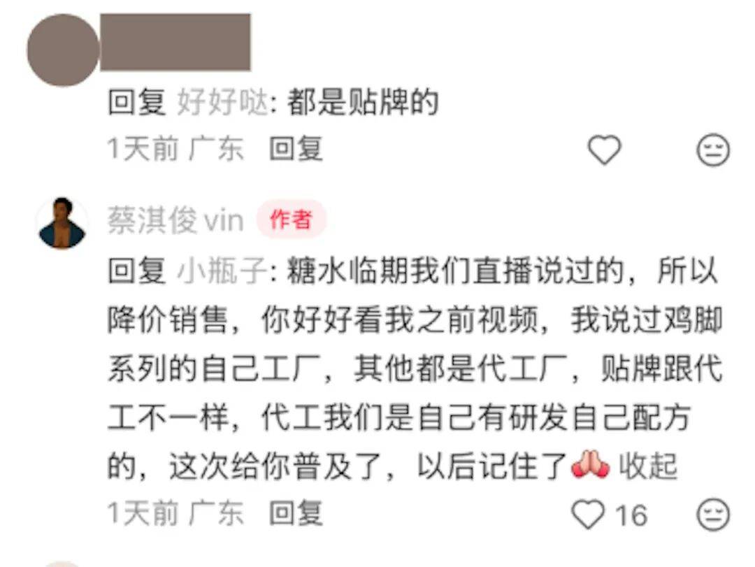 他在回复中耐心解释,关于糖水等临期货的争议,其实在每次直播时就已经光明正大地清楚说明过了。正因为是临期产品,所以才会大幅度降价销售,把真正的实惠让利给街坊。