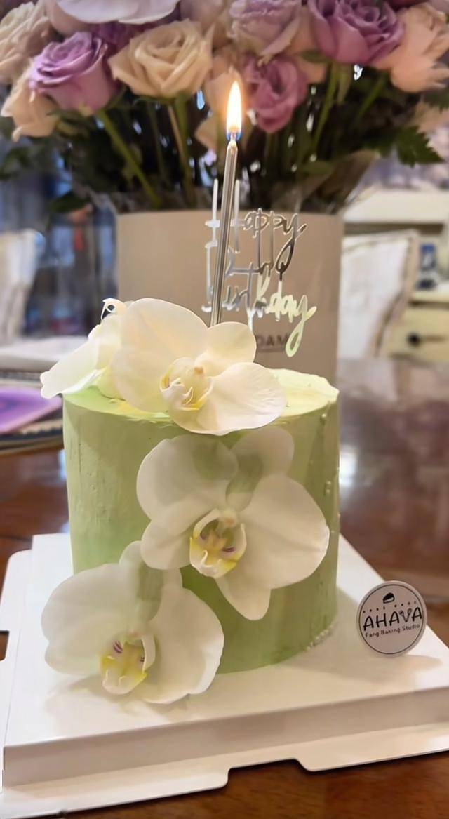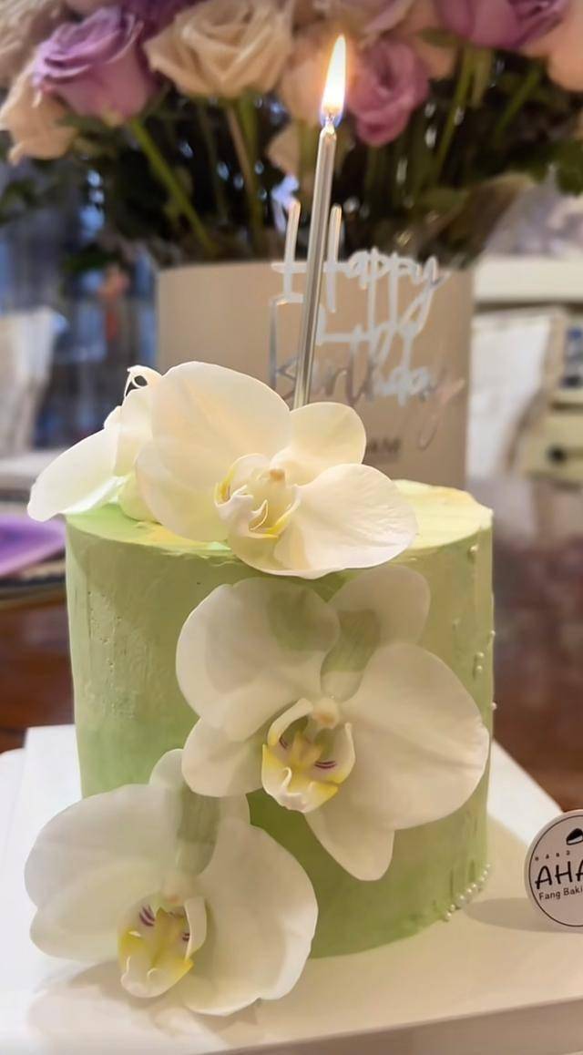 与此同时,她上传了一段庆生视频。视频一开始,是一个造型漂亮的蛋糕,主体是一抹绿色,一旁有蝴蝶兰点缀,很有春日的气息,让人感觉到生机勃勃。