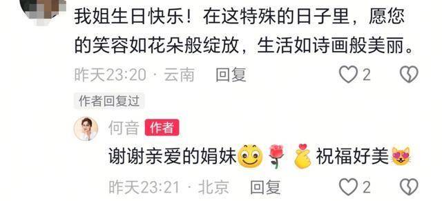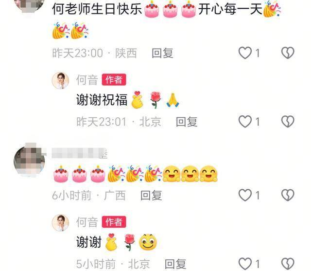 3月16日,对于何音来说,是一个特别的日子,因为这天是她的59岁生日。当日晚,她在社交账号上发文“生日快乐,谢谢所有的祝福!温暖幸福!”