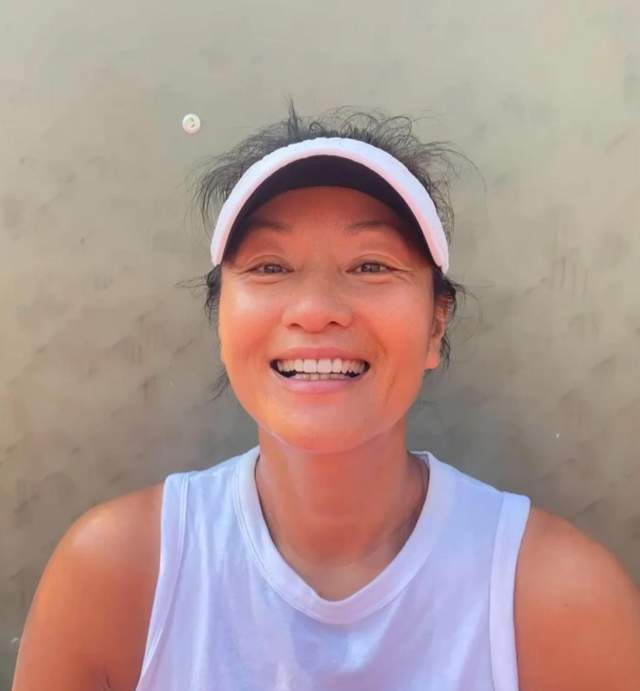 她不用玻尿酸对抗地心引力,用物理贴片。她不活在精修图里,活在晨光里的球场上。这种"反内卷"活法,居然比任何冻龄神话都更有冲击力。