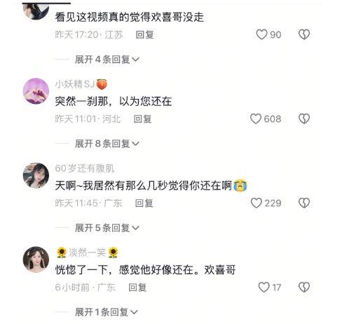 网友纷纷留言表示:总感觉欢喜哥还在!