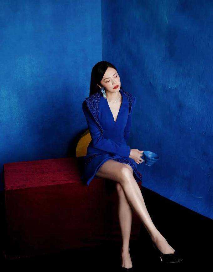 那件如宝石般鲜艳的蓝色丝绒裙子,再配上黑色细腻的高跟鞋和鲜艳的红唇,再加上她那略显忧郁的眼神,使她展现出了一种独特的故事感。众多网友纷纷表示,这正是那些年纪稍大的女演员应该展现的形象。