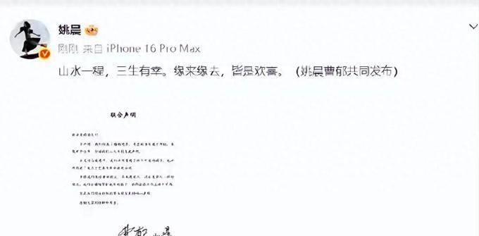 在她的声明中,她写下了“山水一程,三生有幸”这样的句子,这种布局真的令人深感敬佩。尽管感情已经走到了尽头,但生活仍需继续向前迈进。