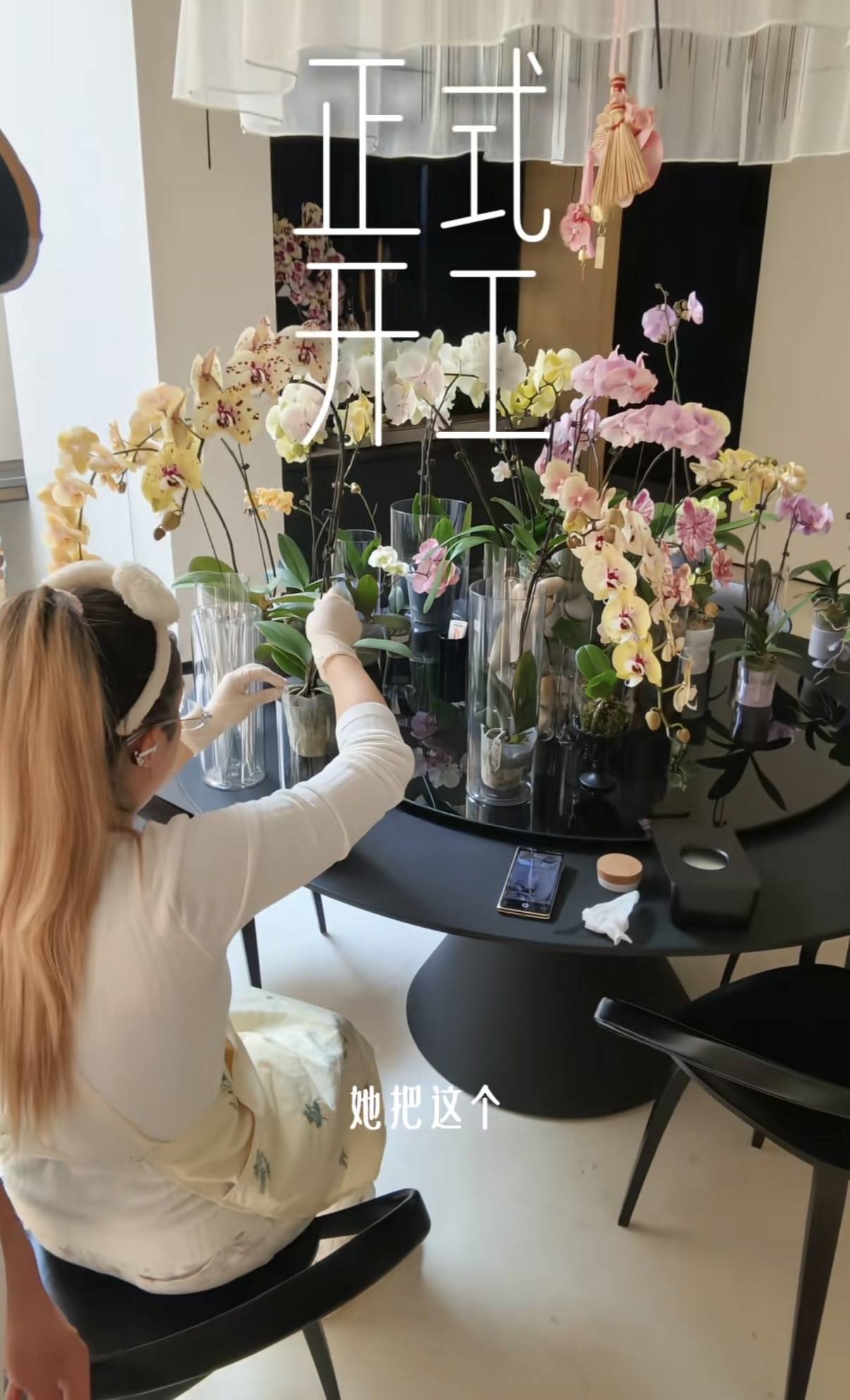 像邴禛禛这样的女人,她更懂得如何取悦自己。把家里的花全都搬到圆形的餐桌上,分别移栽到好看的花瓶里,并且给鲜花塑形,这也是一种很高超的手艺。