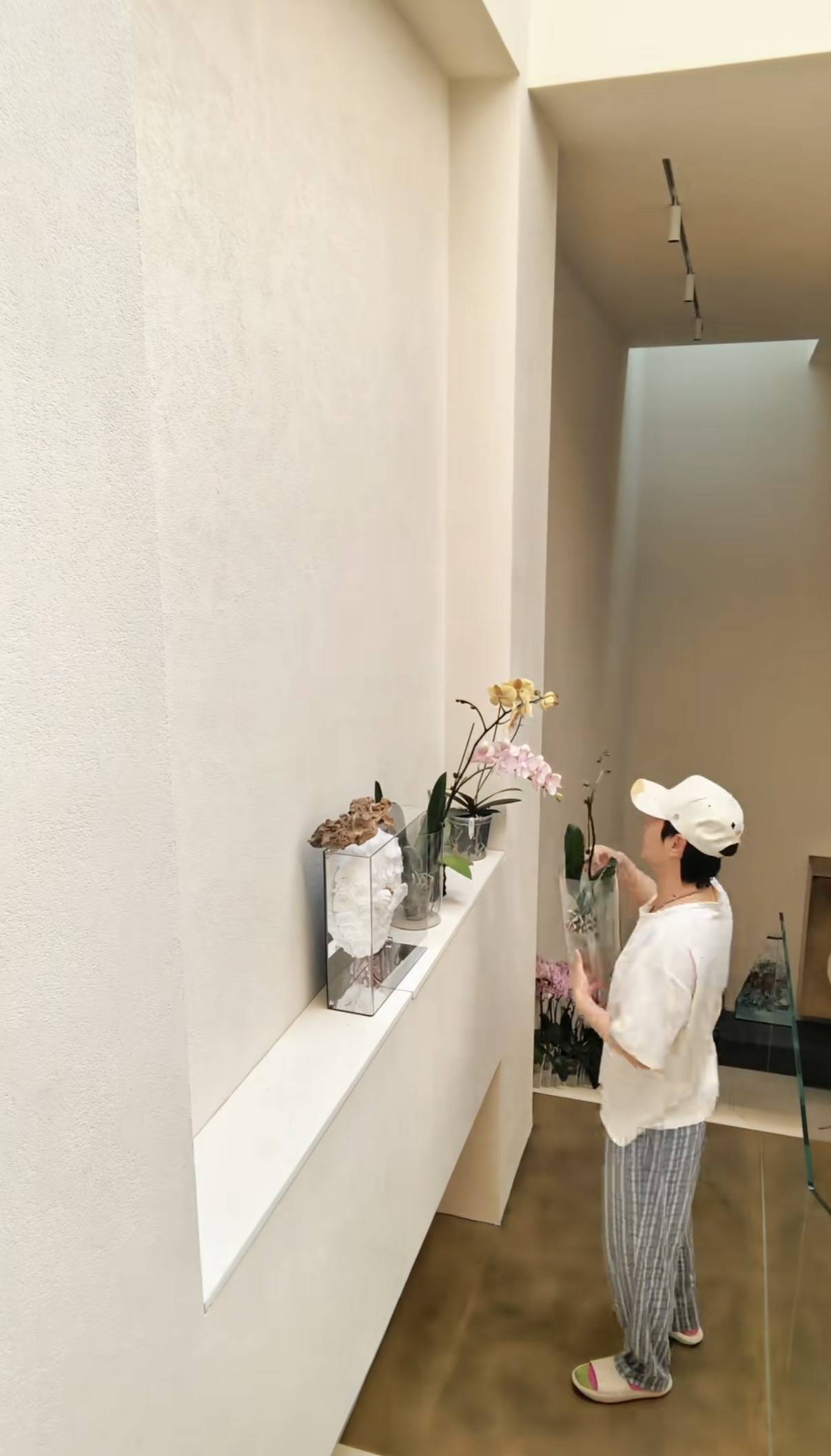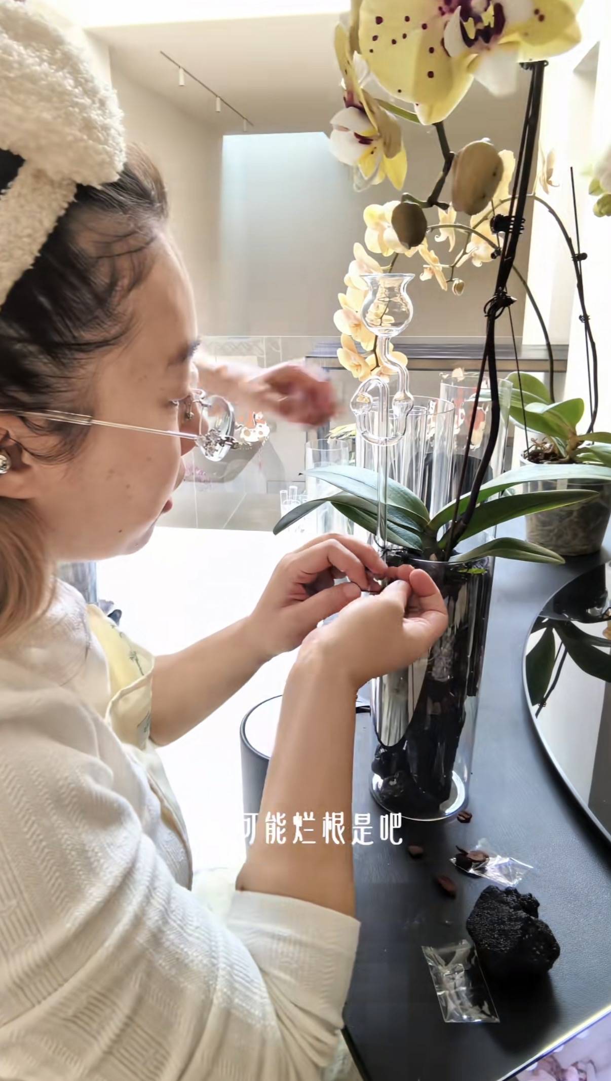 圆润的脸蛋、有些微胖的身材,反而更接地气了。她在家里研究花艺、戴着厚厚的近视镜,就像读书时候的学霸一样!