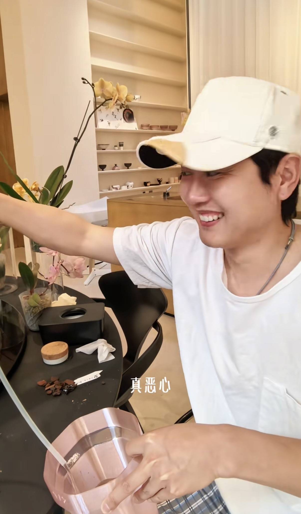 孟鹤堂在生活中也是很有趣,有一个花瓶里的水放多了,他直接找来吸管、把里面的水吸了出来。