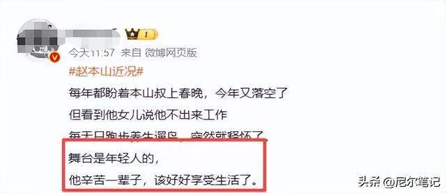 其实大家的心情都一样,喜欢的是那个在舞台上带来欢笑的赵本山,更希望的是这位老艺术家能有一个舒心的晚年。