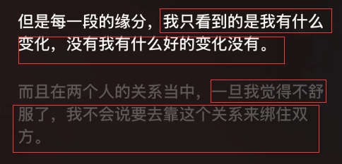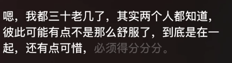 她说,人要明确恋爱结婚是为了什么,哪怕之后找不到能让自己状态特别舒服的人,自己待着也挺好,人,一定要重视自己的感受。