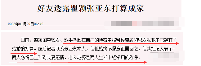 然而,2008年后,他们多次被曝出情感危机。再之后,瞿颖和张亚东口径一致,说不打算结婚,享受当下生活。