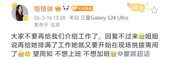 最近瞿颖姐姐又火咯,火到经纪人直接发微博说,不要再给她介绍工作啦,工作太多加班的话,姐会破防的