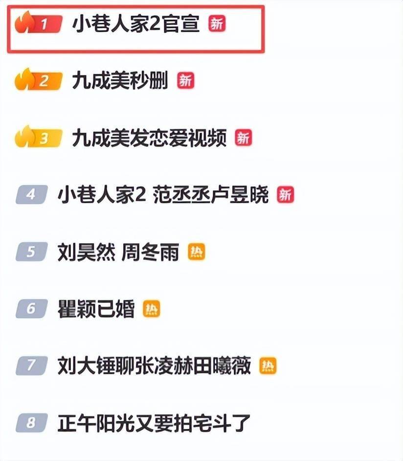 好消息,《小巷人家2》要来了!热搜直接占据头条板块,自《得闲谨制》上映后,正午阳光终于又有好消息贡献给观众了。当然,这并不是空穴来风,而是得到正午阳光官方认证的。在香港国际