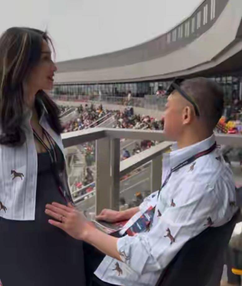 2026年2月14日情人节,崔璨在社交平台发文报喜,宣布自己已怀孕17周。 当时照片中的她孕肚尚不明显,身材苗条。 而到了3月15日现身F1赛场时,根据时间推算,她已怀孕约21周。 尽管孕肚突出,但她的整体状态依然很好。