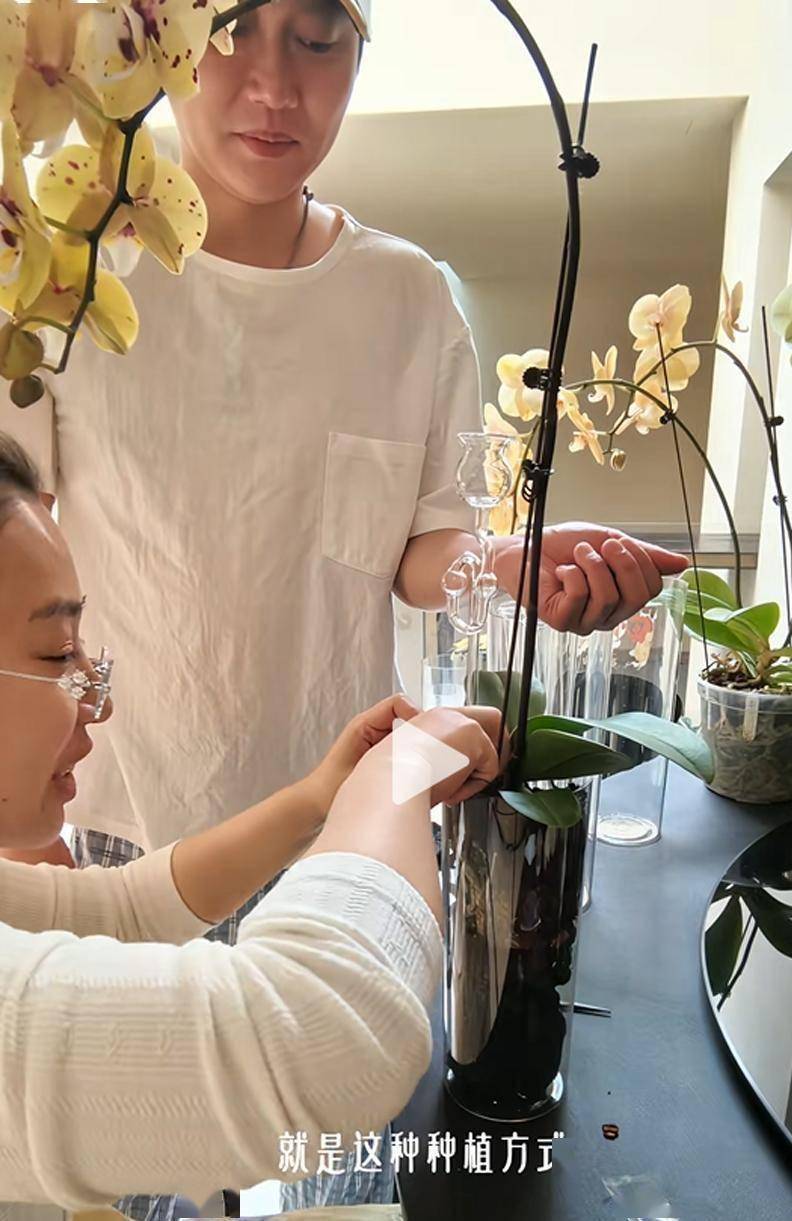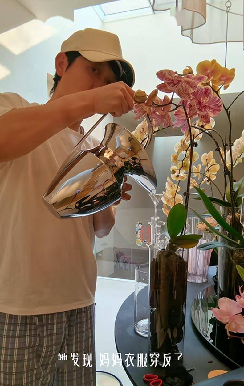 孟鹤堂则在一旁打着下手。他听从妻子的指令,递剪刀、拿花盆、清理掉落的泥土。 有一个花瓶里的水明显放多了,他二话不说,找来一根吸管,俯下身,用嘴将多余的水吸了出来。 这个略显笨拙却十分认真的动作,被镜头记录了下来。