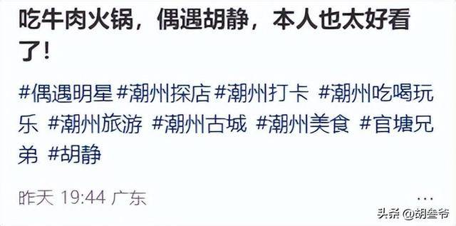 3月17日,广东一家牛肉火锅店里,有网友无意间撞见了胡静。