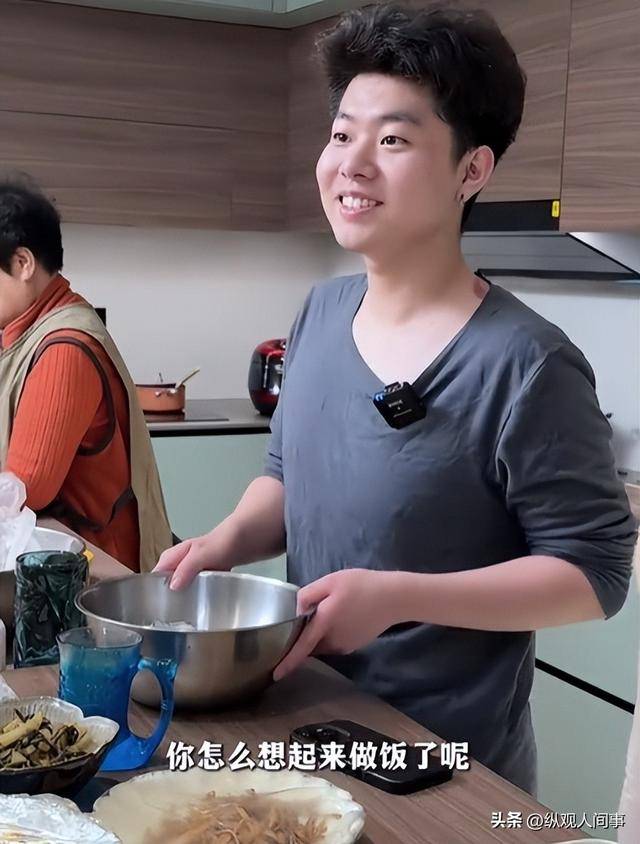 视频里的二儿子系着围裙,在厨房有条不紊忙碌。洗菜、切菜动作娴熟,一看就是经常下厨的样子。