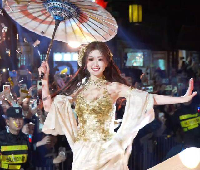 之前福州非遗活动上,她穿鎏金长裙撑油纸伞,站在花船上跳伞舞,二十年芭蕾功底尽显,生图里皮肤白皙饱满,被网友夸成“从古画里走出来的仙女”。